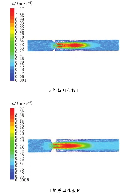 以ʋ=0.2m/s時孔闆的(de)模拟結果爲例,各(ge)孔闆流量計的速(sù)度矢量雲圖🈲見圖(tu)5.