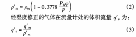 經濕(shi)度修正(zhèng)的氣體(tǐ)在流量(liang)計處得(dé)密度ρ'm爲(wèi):