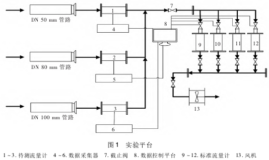 本文實驗(yàn)平台是在流量(liàng)計标準檢定平(ping)台基礎.上改進(jìn)搭建的,增加壓(yā)差采集模塊,實(shi)現壓差與既有(yǒu)參數同步采集(ji)。實驗平台見圖(tú)1。實驗平台設置(zhì)4台标準流量計(ji),均爲羅茨流量(liàng)計,4台标準流量(liang)計的流量範圍(wéi)不同,通過不同(tóng)标準流量計組(zu)合來提供測試(shì)所需的流量範(fàn)圍。數據采集器(qì)是溫度、壓力、流(liu)量、壓差傳感器(qì)的集合。選用數(shù)字壓差傳感器(qi),測量範圍爲-6~6kPa,精(jīng)度高于0.3%。
