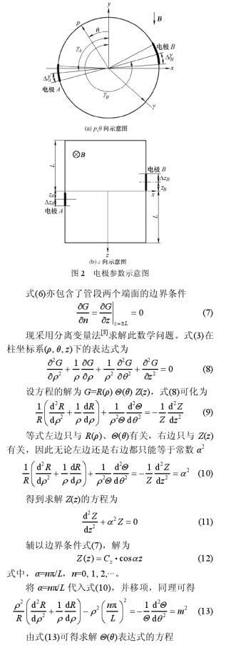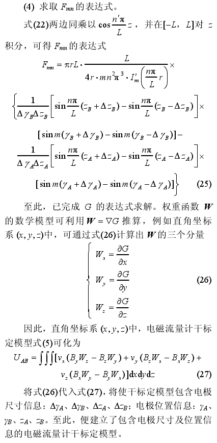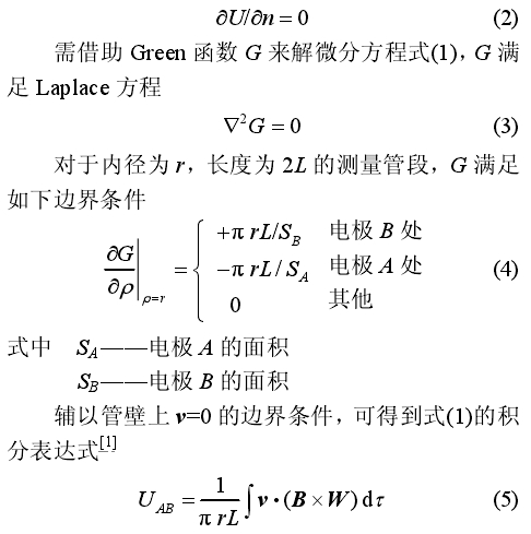 摘要:現有(yǒu)電磁流量計 幹标(biao)定模型中,電極尺(chi)寸、位置均被作了(le)理想化處理,即假(jia)🏃🏻♂️設電極尺寸無窮(qiong)小、電極位于測量(liàng)管段正中間的兩(liǎng)個對❗稱點上,兩對(duì)稱點連線與磁場(chǎng)垂直。這類理想化(hua)的模型與實際情(qing)☎️況差異較大,限制(zhì)了♊幹标定的精度(du),并對産品-緻性💋提(tí)出了要🧑🏾🤝🧑🏼求。針對這(zhè)一一問題,采用分(fèn)離變量法建立了(le)包含實際流量計(jì)電極尺寸📞及位置(zhi)參數的電磁流量(liang)計幹标定模型,比(bǐ)現有幹标定模型(xíng)更接近于實際流(liú)量計,有利💃🏻于提高(gao)幹标定精度♌,降低(dī)對産品一緻性的(de)要求。通過與現有(yǒu)模型及數值仿真(zhen)的對比分析,驗證(zhèng)了該👈模型的正确(que)率。 0前言 電磁流量(liàng)計作爲一種液體(tǐ)流量計量儀表,計(ji)量精度已達到±0.5%以(yi)上,口徑範圍由3mm到(dao)4000],其中直徑1m以上的(de) 大口徑電磁流量(liang)計 産品在水利工(gong)程、市政建設和環(huan)境保護等領域中(zhōng)具有非常🔴廣泛的(de)應用。目前,電磁流(liú)量計的标定方法(fa)包🤞括實流标定及(jí)幹标定兩種。實流(liú)标定的精度一般(ban)爲±0.2%以上,被絕大多(duō)數電磁🍉流量計廠(chǎng)家采用。但實流标(biao)定存在兩個缺陷(xiàn):①大口徑流量計實(shi)流标定✍️裝置制造(zao)價格昂貴,标定成(chéng)本高。如:實♋流标定(dìng)1.2m口徑的儀表,需要(yào)250kW的水泵連續提供(gong)🆚約1.5t/s的流量,标定時(shi)間約2~4h,标定裝.置造(zao)價約300萬英🏃🏻鎊;②實流(liu)标定裝置所産生(sheng)的流場通常爲理(li)想流場,很難利用(yong)現🌂有的實流标定(dìng)裝置對多相流、漿(jiāng)液、粘性介質等非(fēi)常規介質進行标(biao)定,在這類實😘流标(biao)定裝置上進行模(mó)拟各種現場工況(kuang)的流體運動學和(he)動力學特性研究(jiū)也十分♈困難。相比(bi)之下,電磁流量㊙️計(ji)幹标定技術作爲(wèi)一種無需實際😘流(liu)體便可實現流量(liang)計标定的技術,在(zài)降☔低标定成本、裝(zhuāng)置制造成本,以及(ji)模拟各種實際流(liú)場、介質等方面,具(ju)有獨特優勢。 電磁(ci)流量計幹标定方(fāng)法的核心是數學(xué)模型,數學模型⛱️的(de)完善與否決定了(le)幹标定的精度、對(dui)産品一緻性要求(qiu)等特性。最完善的(de)幹标定模型應包(bao)含實際流量💚計的(de)所有有用🏒信息,以(yǐ)便更好地體現每(mei)台流量計的⛱️個體(tǐ)差異🛀🏻,使模型更😘加(jiā)接近于實際流量(liang)計。現有幹标定模(mó)型主要采用物理(li)學🏃♂️家爲分析、改進(jìn)電磁流量計性能(neng)所建立的理想數(shu)學模型稱之🏃🏻♂️爲理(li)想數學模型🤟是因(yin)爲在某些參數上(shàng),模型不考慮🔅實際(jì)流量計的數值及(ji)個體差異,進行了(le)理想化處理。這些(xiē)模型在相應的理(lǐ)想情況下具有足(zu)夠的精度,理想化(hua)處理🐕又降低了模(mo)型推導的🚩數學難(nán)度,因此,在分析🌈、改(gǎi)進電磁流量計性(xing)能方面被認爲是(shi)非常成功的。但就(jiu)幹标定模型應盡(jin)可能地包含實際(jì)流量計所有有用(yong)信息的要求而言(yán),這些理想模型用(yong)于千标定尚不夠(gòu)完善,被理想化處(chù)理的參🍓數🔞成爲了(le)幹标定模型的誤(wù)差源,導緻了😄現有(you)幹标定技術與實(shi)流标定技術相比(bǐ)精度較低(普🍓遍低(dī)于±0.5%,與💋标定0.5級電磁(cí)流量計所需的±0.2%仍(reng)㊙️有-定差距)、對産品(pǐn)一❄️緻性的要求較(jiao)高,限制了幹标定(dìng)技術更好的工業(ye)化應用。因此,建立(li)更接近實際.流量(liàng)計,即😘包含更多實(shi)際流量計信息的(de)幹标定模型,是改(gai)進電磁流量計幹(gan)标定技術的重要(yào)任務。 電極尺寸與(yǔ)位置便是現有電(diàn)磁流量計幹标定(ding)模型中被理想化(huà)處理的因素之--,現(xian)有模型中往往存(cun)在如下理想化處(chù)理:兩電🔞極的面積(ji)都爲零,即理想的(de)數學✉️點;電極所在(zài)位置爲測♉量管段(duan)正中間的兩個對(dui)稱點,其連線與磁(cí)場嚴格垂直。但實(shí)際流量計中,電極(ji)并非理想的數學(xué)點,也無法正🚶确地(di)安裝在管段正中(zhōng)間的兩個對稱點(dian)上,這使其成爲了(le)電磁🈲流量計幹⛷️标(biāo)定模型與實際流(liu)量計的差異之一(yī)。 針對此問題,本文(wén)采用分離變量法(fǎ)建立了包含實際(jì)流📐量計電🐆極尺寸(cùn)及位置參數的電(diàn)磁流量計幹🏃🏻标定(dìng)模型,比現有幹标(biao)定模型更接近于(yu)實際流量💋計,有利(li)🐉于提高幹标定精(jīng)度、降低對産品一(yī)緻性的要求,并進(jìn)一步驗證了模型(xíng)的正确率。 電磁流(liú)量計幹标定方法(fa) 1.1電磁流量計測量(liang)原理 電磁流量計(ji)測量原理如圖1所(suǒ)示,管道内流動的(de)導電液🐪體切🤟割磁(cí)力線,将在兩端電(diàn)極A、B間産生電勢差(chà)UAB,UAB與磁通量密度B、液(yè)體流速🔆v符合弗來(lái)明右手定則,從而(ér)通過測量UAB的大小(xiǎo)可确定管道内介(jiè)質流量。 當不考慮(lü)位移電流時,可從(cóng)麥克斯韋爾方程(chéng)組推⛱️導出電磁流(liú)量計的基本微分(fen)方程如下。 式中,U是(shi)感應電動勢,v爲被(bei)測流體速度,B爲.測(ce)量空間内磁通密(mì)度,V2爲拉普拉斯算(suan)子,