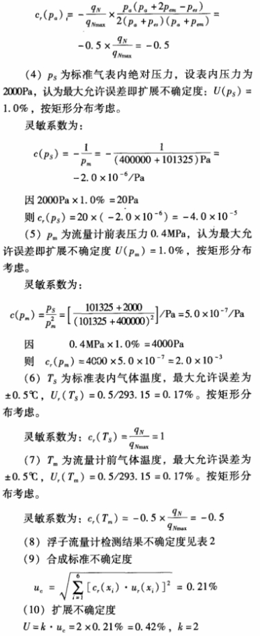 [摘(zhai)要]文章依據(jù)在實際工作(zuò)中的實踐經(jing)驗,克服在❓實(shí)驗室内對高(gāo)壓浮子流量(liàng)計 檢測的局(ju)限性,采用在(zai)線實流檢測(cè)方法,對此方(fāng)法進行分析(xī)和研究,并以(yi)期對節能降(jiang)耗工作有所(suo)裨益。 浮子流(liu)量計 作爲直(zhi)觀流動指示(shì)或測量精度(dù)要求不高的(de)現場指示儀(yi)表,被廣泛地(di)用在電力、石(shi)化、化工、冶金(jin)等工🌈業流程(chéng)中🙇♀️。浮子流量(liàng)計的工作原(yuan)理是:浮子流(liu)量計的流量(liàng)檢測元件是(shì)由一根自下(xià)向上擴大的(de)垂直錐形管(guan)和-一個沿着(zhe)錐管軸上💃下(xià)移動的🛀🏻浮子(zǐ)組所組成。被(bèi)測流體從下(xià)向上經過錐(zhui)管和浮子形(xing)成的環隙時(shi),浮子🙇♀️上🎯下端(duan)産生差壓🤞形(xing)成浮子上升(sheng)的力,當浮子(zi):所受上升力(lì)大于🌏浸在流(liú)體中浮子重(zhòng)量時,浮子便(biàn)上升,環隙面(mian)積随之增大(da),環隙處流體(ti)流速立即下(xia)降,浮子上下(xia)端差壓降低(di),作用于浮子(zi)的上升力亦(yì)随着減少,直(zhí)到上升力等(děng)于浸在流體(tǐ)中浮子重量(liang)時,浮子便穩(wěn)定在某🐆一高(gāo)度。浮子在錐(zhui)管中⭐高度和(hé)通過的流量(liang)有對應關系(xi)。高壓浮子流(liú)量計的工作(zuo)介⛹🏻♀️質-般爲各(gè)種壓縮氣體(ti)。其它流👉量計(jì)如渦💋輪流量(liàng)計,在高壓下(xià)🎯使用和檢測(ce)與在常壓下(xia)使用和檢測(cè)性能有所變(biàn)化,而浮子流(liú)量計由于其(qí)特殊的工作(zuò)原理,常壓下(xia)無法得到高(gao)壓差,高壓浮(fú)子流⁉️量計不(bú)工作❄️。 1實驗室(shì)檢測高壓浮(fú)子流量計的(de)局限性 (1)鍾罩(zhao)式氣體流量(liang)标準裝置是(shi)實驗室中檢(jiǎn)測氣體流量(liàng)計的主要标(biao)準裝置,100L、200L鍾單(dan)餘壓通常爲(wèi)1000~1600Pa,500L鍾罩餘壓通(tōng)常爲2500Pa,而用于(yu)焊接氣體計(jì)量的高壓浮(fu)子流量計工(gōng)作壓力通常(chang)爲0.35~0.5MPa,此類氣體(ti)流量計✨在實(shí)驗室中用鍾(zhōng)罩式氣體流(liu)量标準裝置(zhi)檢測無法得(dé)到高壓差,浮(fú)子流量計不(bu)能工作,無法(fǎ)進行正常檢(jiǎn)測。 (2)在實驗室(shi)中如果用氣(qi)泵做氣源,用(yòng)标準表法對(dui)高壓浮子流(liú)量計進行檢(jiǎn)測,經試驗得(dé)知,氣源壓力(li)不♌能保證恒(héng)定,無法進行(háng)正常檢測。 (3)實(shí)驗室中氣體(tǐ)流量标準裝(zhuang)置的工作介(jie)質通常是空(kong)氣,高壓浮📱子(zǐ)流量計的工(gōng)作介質常爲(wei)Ar、CO2等等,由于工(gōng)作介質和檢(jiǎn)測介質的不(bú)同,即使能夠(gou)檢測也存在(zai)刻度間換算(suan)問題。 2在線實(shí)流檢測 選用(yong)标準氣表,對(duì)高壓浮子流(liú)量計進行在(zai)線實流檢測(ce)。當标準氣表(biǎo)和被檢測流(liu)量計的流量(liàng)達到穩定時(shí),讀取标準氣(qi)表和被檢測(cè)流量計的指(zhǐ)示流量,記錄(lù)标準氣表💞和(hé)被檢測流量(liàng)🌈計進口處的(de)壓力、溫度,計(ji)算被檢測流(liu)量計的實際(ji)流量。工作介(jie)質經過在線(xiàn)高壓被檢浮(fú)子流量計後(hou),氣體壓😄力大(dà)幅度降低,進(jin)人标準氣🛀表(biǎo)的氣體壓力(lì)已是常壓,所(suǒ)以被檢高壓(yā)浮子🈚流量計(jì)和标準👌氣表(biao)都可正常工(gōng)作。 2.1數學模型(xíng) 氣體流量計(jì)标準表檢定(dìng)法,用氣體标(biao)準流量計作(zuo)标準🐆的計算(suan)方法: 式中:qN爲(wèi)被檢流量計(jì)刻度狀态下(xia)的實際流量(liàng),Lmin;qv爲标準表📱指(zhǐ)示流量,L/min;TN,Ts,Tm分别(bié)爲刻度狀态(tai)下、标準器内(nei)和被檢流量(liang)計前的氣體(ti)🌈熱力學溫度(dù),K;PN,Ps,Pm分别爲刻度(du)狀态下、标準(zhun)器内和㊙️被檢(jian)流量計前的(de)氣體絕對壓(yā)力,Ps=pa+pe,Pm=pa+pm;Pa爲當地大(da)氣壓,Pa;Ps爲标準(zhǔn)器内表壓力(li),Pa;pem爲流量計前(qian)表壓力,Pa。 表1數(shù)據爲2025年12月16日(ri)在線實測數(shù)據,室溫10℃,大氣(qì)壓約爲101325Pa,檢測(ce)介質爲🍓Ar。由于(yu)是在線實流(liu),可以使高壓(ya)浮子流量計(jì)在工作狀态(tai)進行檢測,其(qi)檢測介質與(yǔ)工作介質相(xiàng)同,檢測狀況(kuàng)與工作狀況(kuang)相同。 3在線實(shi)流檢測結果(guo)不确定度分(fèn)析 (1)流量計的(de)測量重複性(xìng) 在浮子流量(liàng)計最大流量(liang)點檢測6次,計(ji)算檢測值的(de)标準差,爲其(qi)重複性。設Ts,Tm均(jun)爲283.15K,被檢表刻(kè)度狀态爲0.4MPa,流(liú)量計滿量程(chéng)流量爲25L/min。 ur(q)=0.15% 靈敏(mǐn)系數爲: cr(q)=1 (2)标準(zhun)氣表的不确(què)定度 在标準(zhǔn)氣表爲25L/min流量(liang)點進行檢測(ce)。因标準氣表(biǎo)爲0.2級,則U(qs)=0.2%,取k=2。 靈(ling)敏系數爲:cr(qs)=-1 (3)大(dà)氣壓的測量(liàng)不确定度 pa爲(wèi)大氣壓,用空(kōng)盒氣壓表測(cè)得,其最大允(yun)許誤差爲50Pa,則(ze)不确定度🛀Ur,(pa)=50/101325=0.05%按(an)矩形分布考(kǎo)慮。 靈敏系數(shu)爲: 3面對現實(shí)必須勇于創(chuang)新 3.1流速分布(bù)的影響 本文(wén)分析了流量(liàng)儀表在現場(chang)應用時受制(zhi)于工藝🐕條件(jiàn)。不可能處于(yu)實驗室那樣(yang)的理想條件(jiàn),所帶來的誤(wù)差,其🌈中有些(xiē)影響因素(如(ru)流體的物性(xing)、性狀)是可以(yi)通過修正減(jiǎn)弱或㊙️消除,而(er)有些則不可(kě)