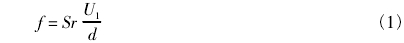式中(zhōng):ƒ爲旋渦脫落頻(pin)率,Hz;Sr爲斯特勞哈(hā)爾數;U1爲發生體(ti)兩側流體平均(jun)流速,m/s;d爲發生體(ti)迎流面的寬度(dù),m。
