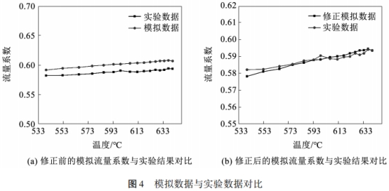 基于(yu)上述設(shè)置,本文(wén)針對溫(wen)度爲535.1~642.5K、壓(ya)力爲19MPa、質(zhi)量流量(liàng)爲1.28kg/s的實(shi)驗工況(kuang)進行了(le)模拟研(yán)究,模拟(ni)的孔闆(pǎn)結構參(can)數、溫度(du)、壓力、流(liu)量等參(can)數以及(jí)數據處(chù)理方法(fa)均與實(shi)驗保持(chí)--緻,得到(dao)了超臨(lín)界二氧(yang)化碳工(gōng)質的流(liú)量系數(shu)。将模拟(ni)計算得(dé)到的流(liú)㊙️量系數(shu)與實流(liu)測量結(jie)果進行(hang)對比,結(jie)果如圖(tu)4所示。,通(tōng)過數值(zhi)模拟得(de)到的流(liu)量系數(shù)與實驗(yan)數據總(zǒng)體❗趨勢(shì)相似,在(zai)數值上(shàng)⛷️均高于(yú)實🥵驗數(shù)據🚶♀️,但相(xiàng)對于實(shí)驗數據(jù)的偏差(chà)較小,偏(piān)差爲1.62%~2.69%。