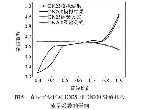 (2)标(biāo)準文件(jian)[I0]中經驗(yàn)計算公(gong)式的結(jie)果不随(suí)節流孔(kong)厚度而(ér)發生改(gǎi)🤟變,其中(zhong)DN25管道的(de)經驗公(gong)式計算(suan)結果略(luè)大-一些(xie),模拟得(dé)到的🚶DN25和(hé)DN200管✔️道的(de)流量系(xi)數均小(xiao)于經👅驗(yàn)公式計(ji)算結果(guǒ),其中前(qián)者的🏃♂️相(xiang)對誤♌差(cha)爲0.18%~1.84%,後者(zhe)的‼️相對(dui)誤差爲(wèi)0.31%~2.05%;