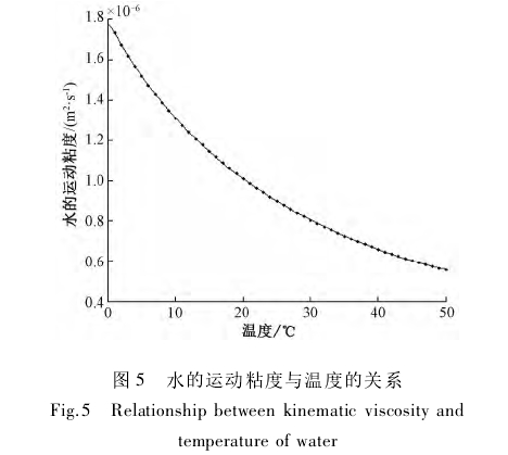 流(liú)體粘度受流(liú)體溫度的影(ying)響具有非線(xiàn)性特點,通💃🏻過(guò)拟㊙️合溫♉度與(yu)運動粘度值(zhí),得到不同溫(wen)度下水的🐇運(yùn)動粘度的曲(qǔ)線,如圖5所示(shì)。