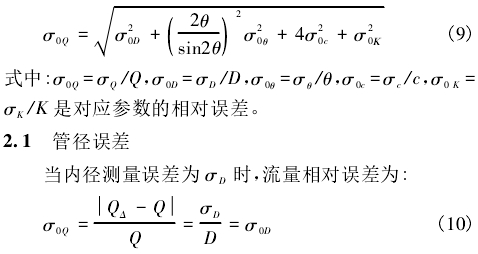 由于管徑測(cè)量精度很高(gāo),在此忽略此(ci)項誤差。将θ=45°,σ0θ=0.05%,σ0C=0.1%代(dai)♻️入式(9)得: