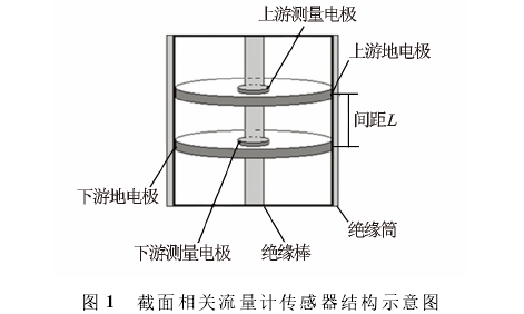 截面相關(guan)流量計儀器傳感(gǎn)器的結構如圖1所(suo)示,由下至上依次(cì)爲集流傘、傳感器(qì)及電路筒。其中,絕(jue)緣筒的内側壁上(shàng)分别鑲嵌🌈下遊地(di)電極和上遊地電(dian)極,下遊地電極和(he)上遊💁地電極💋均爲(wèi)環🈲狀金屬電極,下(xià)遊地電極與下遊(yóu)😄測量電極處于同(tong)一水平面上,形成(cheng)一對下測量電極(ji)對🙇♀️;上遊地電極與(yu)上遊測量📐電極處(chu)于同一㊙️水平面.上(shang),形成一對上測量(liang)電極對。