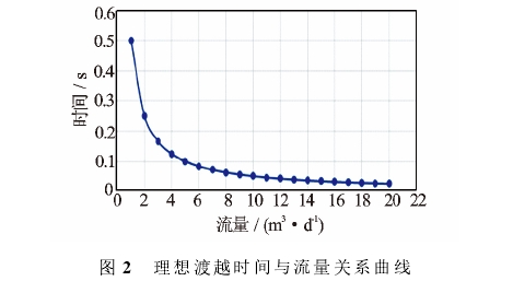 儀器傳感器絕緣(yuán)筒内徑設計爲16mm,絕(jué)緣棒.外徑設計爲(wei)5mm,根據經驗💛,上下遊(you)電極距L選擇爲絕(jue)緣筒内徑d的0.5到2倍(bèi)爲宜,這裏🏃選取L的(de)長度爲10mm。傳感器截(jie)面積設爲S,流速v與(yu)渡越時⛱️間t成反比(bǐ)關系,通過流量Qv與(yu)流速v的關系Qv=86400vS,可得(dé)🔅到圖2所示的曲線(xian)圖👉。由圖2可以⛹🏻♀️看出(chū),當流量小于10m3/d,傳感(gan)器的響應比較理(lǐ)想。