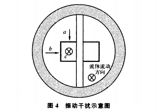 懸浮式(shi)結構對于(yú)流場中的(de)振動幹擾(rǎo)噪聲可以(yǐ)實現❌有效(xiao)的抑制.管(guǎn)道在外界(jiè)幹擾作用(yong)下産生的(de)振動總是(shi)可以分解(jie)爲如圖4所(suǒ)示的三個(ge)方向,即方(fāng)向🈲a----與旋渦(wo)🤩升力方向(xiang)相同、方向(xiang)b----與流體流(liu)動方向垂(chui)直、方向c--與(yǔ)流體流動(dòng)方向平行(hang).根據懸浮(fú)式差動傳(chuán)感器結構(gou)與安裝方(fang)式,可知方(fāng)向b與方向(xiang)c上的振動(dong)幹擾不會(hui)産生噪聲(shēng)信号,隻有(you)方向a的振(zhèn)動幹擾可(ke)引起傳感(gǎn)器殼體的(de)跟随振動(dong).此時,由🔞于(yu)傳感器中(zhōng)金😍屬🌈質量(liang)塊的慣性(xing)作用,檢測(cè)單元中上(shang)下對稱的(de)兩個壓電(diàn)陶瓷片會(huì)分别受到(dào)壓力和拉(la)力的作用(yòng),這使得兩(liang)個壓電陶(tao)😄瓷片分别(bie)産生極性(xing)相反的正(zheng)負電荷信(xìn)号.由于兩(liang)個壓電陶(táo)瓷片采用(yong)并聯結構(gòu),所以當上(shang)下兩個壓(ya)電陶瓷片(pian)的信号在(zài)金屬質量(liàng)塊中相加(jia)時,幹擾信(xìn)号所産生(sheng)的電荷信(xìn)号會相互(hù)抵⭐消,傳感(gan)器起到了(le)自減振的(de)作用,從而(ér)極大地削(xue)弱了此方(fang)向的幹擾(rǎo)信号.