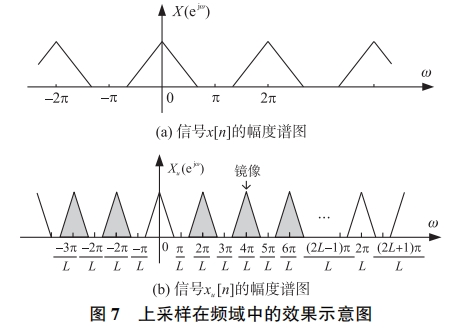 對于因(yīn)子爲L的(de)插零擴(kuò)展,相較(jiao)于圖7(a),插(chā)值後的(de)信号☀️在(zài)基帶_上(shang)有L-1個額(é)外的原(yuán)信号譜(pǔ)鏡像産(chan)生。随後(hòu)通過低(di)通濾波(bo)濾除這(zhe)L-1個鏡💋像(xiang),等同于(yu)将内插(cha)樣本值(zhi)💞“填入”到(dào)xu[n]中的零(líng)樣本,上(shàng),實現原(yuán)采集信(xin)号x[n]的上(shang)采樣處(chù)理。
