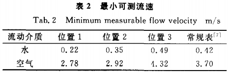 渦街流量(liàng)計測量下限(xiàn)的拓展一直(zhí)是研究的熱(rè)點.各種情況(kuàng)的最小可測(cè)流速及常規(guī)渦街流量計(jì)的測量下限(xian)列于表2.在實(shí)驗中,越靠近(jin)發生體,旋渦(wo)的旋度強,測(cè)量的靈敏度(du)高,不論是水(shui)還是空氣,最(zuì)小可測流量(liang)都是随取壓(ya)位置的後移(yí)而增大.當測(cè)量水時,位置(zhi)1的測量下限(xiàn)僅爲常規表(biǎo)的52%;當測量空(kong)氣時,位置1的(de)測量下限爲(wèi)常規表的75%,因(yīn)此采用管壁(bì)差壓法能有(yǒu)效地降低渦(wo)街流量計的(de)測量下限,将(jiāng)取壓位置适(shi)當靠近發生(shēng)體能進一步(bù)降低測量下(xia)限.
