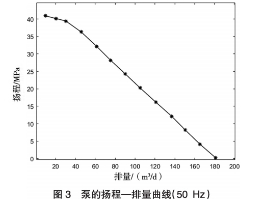 泵性能曲(qǔ)線,即是測出不同(tong)排量下的揚程、電(diàn)流、軸功㊙️率⁉️等數據(jù),用以判定電泵是(shì)否符合GB/T16750--2015《潛油電泵(bèng)機🔴組》的要求。由于(yu)泵性能曲🏃♂️線是在(zài)地面完成的,測出(chu)的試驗💔數據實💰際(jì)就是泵出口在不(bú)同排量下的壓力(lì)數據。如果在油井(jǐng)井下端測📱出泵出(chū)口壓力、吸人👨❤️👨口壓(ya)力,就可🐇以近似得(de)出💔在一定壓力下(xia)的排量數據,實驗(yàn)井50Hz工頻的排量壓(ya)力曲線如圖3所示(shì)。