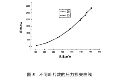 流(liu)量計常用葉輪葉(ye)片數爲13,葉片形狀(zhuàng)爲矩形。爲提高流(liu)量計💚的靈敏度作(zuo)者對葉輪作了改(gǎi)造,将葉片數增爲(wèi)20,葉片形狀設計成(cheng)葉頂寬葉根窄的(de)倒梯形形狀梯形(xing)尺寸以保證相同(tóng)重疊度爲原則。圖(tú)5爲分别采用13和✏️20葉(yè)片數的葉輪後流(liu)量計壓損曲線圖(tu)。可🎯看到兩條曲線(xian)幾乎重合。說明在(zài)允許範圍内,葉輪(lún)📧葉片數的增減以(yi)及葉片形狀的改(gǎi)變對壓力損失🔞的(de)影響可以忽略。但(dan)通過對起始流量(liang)的測量發現,對13葉(yè)片數葉輪,測得💯流(liu)量計起始流量⛱️爲(wèi)7.5m³/h,而對20葉片🆚數葉輪(lún)則爲6.5m³/h,可見适當增(zēng)加葉片數和重疊(dié)度,可以❄️在不增加(jia)壓損的前提下較(jiao)明顯地提高❌流量(liang)計的🤩靈敏度。