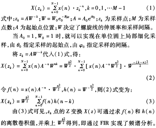 N點FFT計算的頻(pin)譜實際上是Z平面(miàn)單位圓上的N點等(děng)間隔采樣✉️,Chirp-Z變換☔(即(jí)CZT)是Z平面螺旋線周(zhou)線上Z變換的等間(jiān)隔取樣,這些取樣(yàng)在螺旋線的某--部(bù)分上按等角度分(fen)布。具體地說,令x(n)表(biǎo)示🛀🏻N點序列,X(z)表示其(qí)Z變換,而利用CZT算法(fǎ),可以計算給定點(diǎn)z的X(z),N點x(n)的Chirp-Z變換爲: