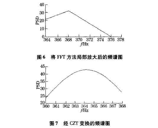 在FFT變換的基礎上(shang),先确定頻譜中主(zhu)瓣的位置(仿真🏃🏻實(shí)驗中取最👌大值和(he)次最大值之間作(zuò)爲局部放大的主(zhǔ)瓣位置),然後在此(ci)區間進行CZT變換,仿(pang)真結果如圖7所示(shi)💁: