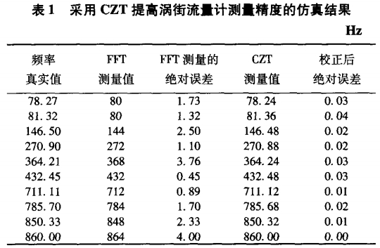用同樣(yàng)的方法,通過對待(dài)檢測的氣體流量(liàng)輸出信号頻🌈率的(de)各頻段各取2個頻(pín)率點,共8組數據,進(jin)行仿真實驗,将FFT方(fāng)法和CZT方法進行比(bi)較,結果如表1所示(shì)。從表1可以🔴看出,經(jīng)CZT方法校正後的🔞絕(jue)對誤差基本控制(zhì)在0.02Hz内,精度大大提(ti)高。
