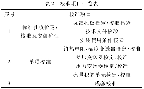 校準項目見表2,分(fèn)體式标準孔闆流(liú)量計單次校準應(ying)包括單項校準和(hé)成套校準兩項。