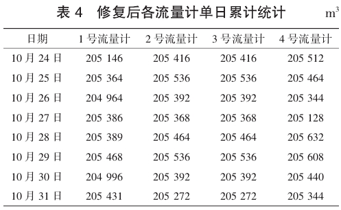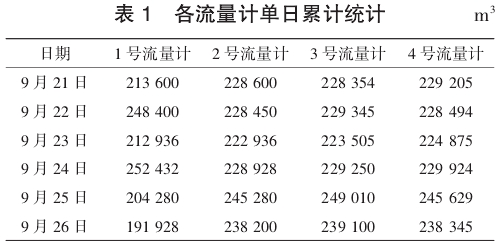 結合故(gu)障案例進行分(fen)析:1号進水流量(liàng)計瞬時數據出(chū)現㊙️波動💋,在同工(gong)況下計量值與(yǔ)其他3台流量計(jì)數🌐值對比有明(míng)顯偏差😍。4台流🔞量(liàng)計每日累計數(shu)據值見表1。
