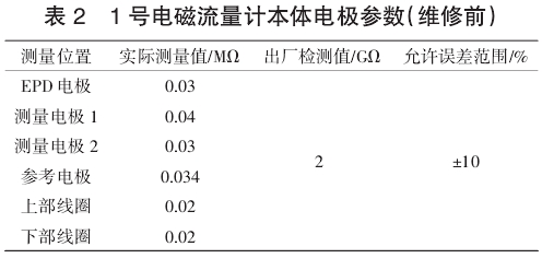 對測量傳(chuán)感器本體絕緣(yuan)情況進行檢查(chá),觀測絕緣🆚阻🌈值(zhí)是🏃🏻否正常、電極(ji)是否鏽蝕、線圈(quan)是否鏽斷。1号電(dian).磁流量計本體(tǐ)電極參數見表(biǎo)2。