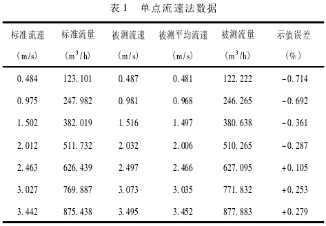 單點流速法(fǎ)測量數據與(yu)計算結果如(rú)表1所示。