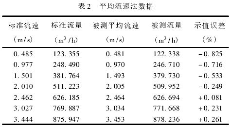 平均流速(su)法測量數據(jù)與計算結果(guǒ)如表2所示。