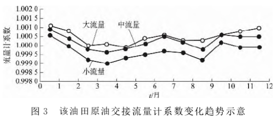 以該油田原油交(jiao)接小、中、大流量運(yùn)行狀況爲例,流🏃🏻♂️量(liang)計系✌️數變化趨勢(shì)如圖3所示。由圖3看(kan)出,中流量運行狀(zhuang)況最優。說明該流(liu)量計日常運行流(liú)量與檢定時的流(liu)量保持一緻,變化(hua)最優。
