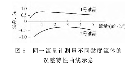 黏(nián)度是影響流體流(liú)動的一種性質,當(dāng)流體黏度增大時(shi),流量計内流動阻(zǔ)力增大,導緻壓差(cha)增加。當測量精度(dù)低🥵于0.1級時,可以不(bu)💔考慮黏度的影響(xiǎng);當測量精度高于(yu)0.1級時,就必須考慮(lǜ)這種影響。閱讀文(wén)獻得知由于黏💞度(du)具有兩重性,由它(tā)引起的流量計進(jìn)出口壓差增加,導(dao)緻漏失量增大的(de)影響可以忽略。因(yīn)😘此,當流體黏度η變(biàn)化時,流量計的E與(yu)1/η成線性關🏒系,即黏(nian)度增加♌,漏失量🏃減(jiǎn)少,流👄量計誤差特(tè)性曲線向正方向(xiàng)偏移,圖5是使用同(tong)一流量計測量不(bú)同黏度流體得出(chū)的誤差特性曲🌈線(xiàn)。