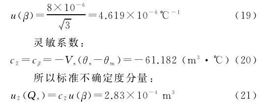 2)檢測用介(jie)質的體積膨(péng)脹系數β引人(ren)的标準不确(que)定度分量u2(Qs)