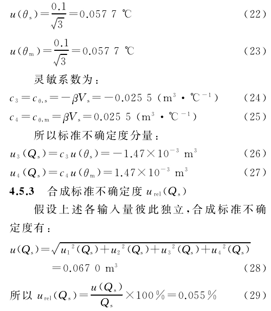 3)标準器和(he)流量計處的(de)液體溫度θs,θm引(yin)人的标準不(bú)确定度✔️分量(liàng)u3(Qs)、u4(Qs)