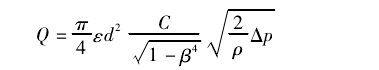 式中(zhōng):ε爲可膨脹性(xìng)系數;d爲開孔(kǒng)直徑,mm;C爲流出(chū)系數;β爲直徑(jing)比(開🏃孔直徑(jìng)/上遊管道内(nei)徑);ρ爲介質密(mi)度.kg/m3;△p爲壓🔴力差(cha),Pa。