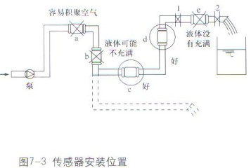 傳感(gan)器安裝(zhuang)方向可(ke)水平、垂(chuí)直或傾(qing)斜。因爲(wèi)流量計(ji)在工作(zuò)時,始🏃♂️終(zhong)要求測(cè)量管内(nei)充滿被(bèi)測介質(zhì)。水平安(ān)裝時,爲(wei)了确保(bao)這一點(diǎn),必要時(shi)傳感器(qi)安裝位(wèi)置的标(biao)高💜可以(yǐ)略低于(yú)管道的(de)标高,如(ru)圖7-1,或使(shǐ)傳感器(qì)的下遊(yóu)具有足(zú)夠的背(bei)壓,如圖(tú)7-2。