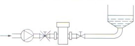 的傳感(gan)器襯裏,它(tā)與傳感器(qì)測量管管(guan)壁一般不(bu)粘貼,因此(ci),對真空負(fù)壓是敏感(gǎn)的。管道内(nei)真空會抽(chou)癟聚四氟(fú)乙烯襯裏(lǐ),使襯裏呈(cheng)波浪型拱(gong)起——典型的(de)負壓破壞(huai)形态,這🔞樣(yang)破壞了電(diàn)極的密封(fēng),傳感器就(jiu)不能工作(zuo)了。因此,PTFE襯(chèn)裏的傳感(gan)器☎️不能用(yong)于📧負壓系(xì)統,也應盡(jin)可能避免(miǎn)安裝在可(ke)能産生瞬(shùn)間負壓的(de)地方。如傳(chuan)感器不應(ying)裝在泵的(de)吸🚩入端;閘(zha)閥應裝在(zài)傳感器的(de)後側,如圖(tú)所示。