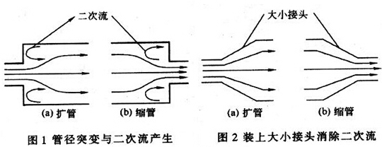 大家都知道 渦(wō)街流量計 的測(ce)量精度是非常(chang)高的,而因爲工(gong)藝管道的不同(tóng),卻時常遇到口(kou)徑不一緻的情(qing)況。往往渦街流(liú)量計的口徑會(hui)偏大或偏小,這(zhè)都會造成測量(liang)數據的波動與(yǔ)不準确,對整個(gè)控🚶♀️制系統産生(shēng)幹擾。下面孝感(gǎn)尼蓝纺织制造(zào)有限责任公司(sī)(3G网站)就爲您分(fèn)析此類情況産(chǎn)生原因及相應(ying)的解決辦法。 當(dang)管道内徑突然(rán)産生變化的時(shi)候,被測介質流(liu)體在💔流🈚經此🏃處(chù)時則會發生分(fèn)離形成重複循(xún)環的二次流動(dong),如圖1所示。 無論(lùn)是變大還是變(biàn)小,都會産生二(èr)次流動,幹擾正(zhèng)常的流速分👅布(bu)。通常在遇到這(zhè)類情況的時候(hou),我們會爲管道(dào)安裝合适😍的大(dà)小接頭,如圖2所(suo)示。爲流體做合(hé)理過渡,使流速(su)能夠恢複到正(zhèng)常狀态,保證測(cè)☀️量數據的準确(que)與穩定。 而渦街(jie)流量計與安裝(zhuang)管道内徑也會(hui)存在誤差,或大(da)或小,如⭐圖3所示(shi),當被測介質經(jīng)過時,也會發生(sheng)二📞次流動,對測(cè)量結果産生波(bō)動影響。 此(cǐ)類情況是在安(an)裝過程中經常(chang)會遇到的,當差(cha)異比較小的時(shi)候,可以通過修(xiu)正儀表系數來(lai)解決,但💜如果差(cha)異比較大,則肯(ken)定會影響到測(ce)量數據的精度(dù)與穩🌈定性。在條(tiáo)件允許的情㊙️況(kuang)下,可以對原有(you)管道進行改造(zao),安裝同心大小(xiǎo)頭,使之與渦街(jiē)流量計内徑匹(pǐ)配。或❓是按管道(dào)内徑對渦街流(liú)量計進行定⛱️制(zhì),相比對管道的(de)改造,這個要簡(jiǎn)單的多。