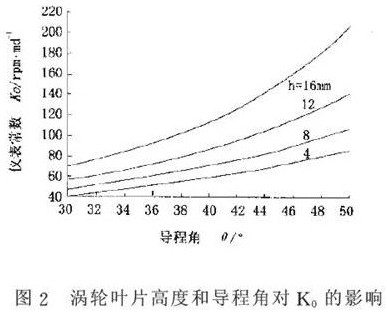 式2可見,對确(què)定的渦輪流量傳(chuan)感器)易知口徑D大(da), K0值小,葉片數n大, K0值(zhí)大等.如果要獲得(de)較大的儀表常數(shu),就要對渦輪傳感(gan)器的結構參數進(jin)行優化設計,從圖(tu)2(可以看出,葉片高(gao)度;增加, K0增大,導程(cheng)角增大, K0增大.對于(yú)¢19的過環空大排量(liàng)液體渦🙇♀️輪流量計(jì)而言,由上式計算(suàn)得K0=74.567rpm/m3/d而水中标定的(de)KW=78.89rpm/m3/d,表1給出不同♻️口徑(jing)和不同導程角下(xia)液體✊渦輪流量計(jì)固有儀表常數的(de)🏃🏻計算值.
