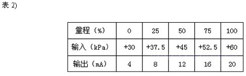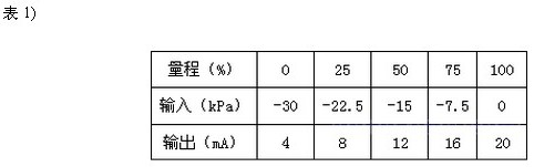 調校時,正(zhèng)壓室接輸入信号(hào),負壓室通大氣。假(jiǎ)設儀表量程仍爲(wei)30kPa,遷移量ρgh=30kPa。 輸入與輸(shu)出的關系見表2)。