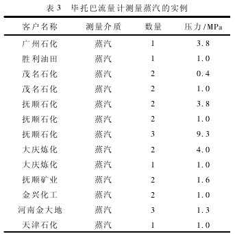 由于被(bei)測介質(zhi)管徑較(jiào)大(DN700),工作(zuò)流量範(fan)圍寬(10~150t/h),渦(wō)街流量(liang)計和一(yī)體化節(jie)流式流(liu)量計在(zai)低流量(liàng)時保證(zhèng)測量的(de)準确性(xing)方面差(chà)一些,會(hui)造成一(yī)定的測(cè)量誤差(cha),而畢托(tuō)巴流量(liang)計測量(liàng)範圍較(jiao)🔱寬,既能(neng)夠保證(zhèng)小流量(liang)時準确(què)測量,又(you)能✉️滿足(zú)大流量(liang)的準确(que)🌈測量,同(tóng)時在大(da)管徑上(shàng)的安裝(zhuang)也較👈易(yi)實現。參(can)照其他(ta)企業畢(bi)托巴流(liu)量計測(ce)量低壓(ya)蒸汽的(de)成功經(jīng)驗,如表(biǎo)3所示,确(que)定該低(dī)壓蒸汽(qi)計量采(cǎi)用的流(liú)量計爲(wei)畢托巴(bā)蒸汽流(liu)量計。