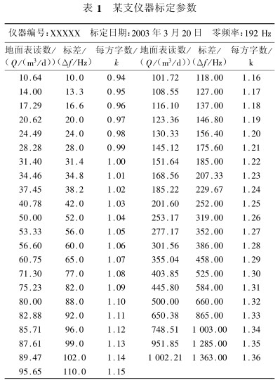 式中,△?爲标(biao)差;?i爲測量頻(pin)率值;?0爲零頻(pin)率。然後通過(guo)查表得到每(měi)方字數即可(kě)求得地面流(liu)量值: