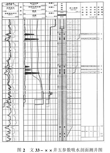 例(lì)如: 圖2是文 33-××井(jing)五參數吸水(shuǐ)剖面測井圖(tú),測井在2690m遇阻(zu),第10、11、12" 号層未測(cè)出,但經電磁(ci)流量計測井(jǐng)曲線顯示,這(zhè)3個遇阻層吸(xi)水,絕對吸水(shui)量爲74.6m3/d,相對吸(xī)水量爲41.2%。