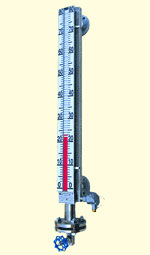 在您選用(yòng)此産品前我們(men)先将磁性翻柱(zhu)液位計的工作(zuo)🚶♀️原理✔️作一簡單(dan)的介紹。它有一(yi)容納浮球的腔(qiāng)體我們稱其爲(wèi)主體管或👨❤️👨外殼(ké),它通過法蘭或(huo)其他接口與容(rong)器組成一個連(lián)通器;這樣它腔(qiāng)體内的液⁉️面與(yu)容器内的液面(miàn)是相同高度的(de),所以腔體内的(de)浮球會随着㊙️容(rong)器内液面的升(shēng)降而升降;這時(shí)候我💜們并不能(néng)看到液位,所以(yi)我們在腔體的(de)外面裝了一個(gè)翻柱顯示器🤩,因(yīn)爲我們在制造(zào)浮球時在浮球(qiú)沉入液體與浮(fu)出部分的交界(jie)處安裝了磁鋼(gāng),它與⭐浮球随液(yè)面升降時,它的(de)磁性透過外殼(ke)傳遞給翻柱顯(xiǎn)示器,推動磁翻(fan)柱翻🆚轉180°;由于磁(cí)翻柱是有紅、白(bai)❌兩個半圓柱☔合(he)成的圓柱體,所(suǒ)以翻轉180°後朝向(xiang)翻柱顯示🈲器外(wài)的會改變顔色(se)(液面以下紅色(sè)、以上白色),兩色(sè)交界✉️處即是液(yè)面的高度。