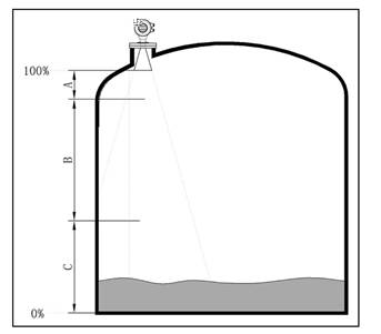 若介質(zhì)爲低介電常數(shù)當其處于低液(yè)位時,罐低可見(jian),此時爲保證測(ce)量精度,建議将(jiāng)零點定在低高(gao)度爲C 的👌位置。