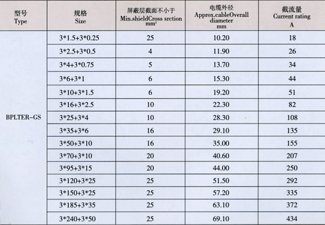 3、額定電壓(ya):600/1000V,交流試驗(yan)電壓3500V。
