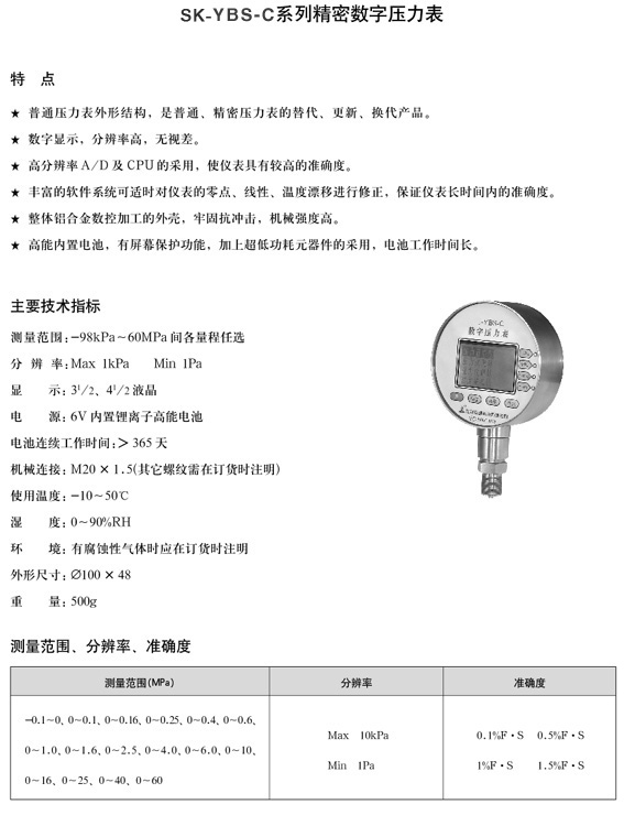 SK-YBS-C系列(lie)精密數字(zi)壓力表