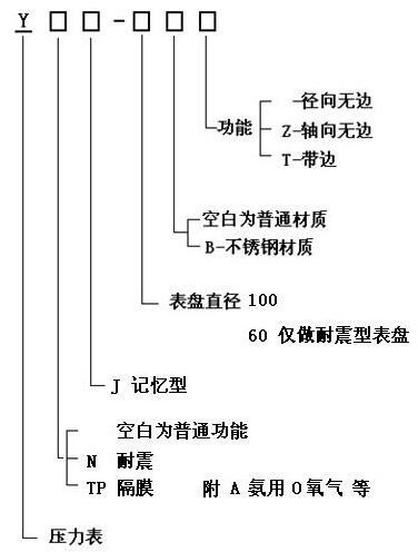 YJ型(xíng)記憶型(xíng)壓力表(biao) 英文名(ming):memory pressure gauge,是由各(gè)種 壓力(li)表 與一(yi)個記憶(yì)型裝置(zhi)配接組(zǔ)成,其原(yuan)理是當(dāng)壓力表(biǎo)的⛷️指針(zhēn)在🌐随着(zhe)被測量(liàng)介質壓(yā)力的增(zeng)大而升(sheng)高的⭕同(tong)時也帶(dài)動記👉憶(yi)表針的(de)上升,當(dang)随着被(bèi)測量介(jiè)質的壓(yā)力🐉降低(dī)時,壓力(lì)表🙇♀️的指(zhǐ)針回落(luò)後🏃🏻而記(ji)憶型表(biǎo)針仍然(rán)停留在(zài)原有位(wei)置。而玻(bo)璃面闆(pan)上的記(jì)憶裝置(zhi)上有個(gè)旋鈕可(kě)随時将(jiang)記憶型(xing)表針調(diào)至零位(wèi)。 記憶型(xíng)壓力表(biao)主要适(shì)用于當(dāng)工作人(rén)員不在(zai)現場的(de)情況下(xia)壓力表(biao)能如實(shí)反應出(chu)測量現(xian)場所反(fǎn)應㊙️出的(de)最高壓(ya)力值。 産(chan)品選型(xing): 使用須(xū)知: 其使(shi)用條件(jiàn)同原選(xuan)用壓力(li)表。調定(dìng)指針時(shi)請輕緩(huan)🚶轉動🔞設(she)定🈚旋鈕(niu)。訂貨時(shi)請說明(ming)選用的(de)壓力表(biao)型号,公(gong)稱👈直徑(jing),測量範(fàn)圍🤞,精确(què)度等級(ji)及定位(wèi)代号-J。